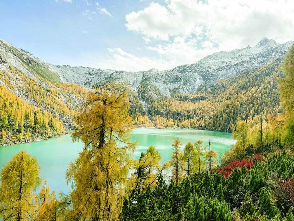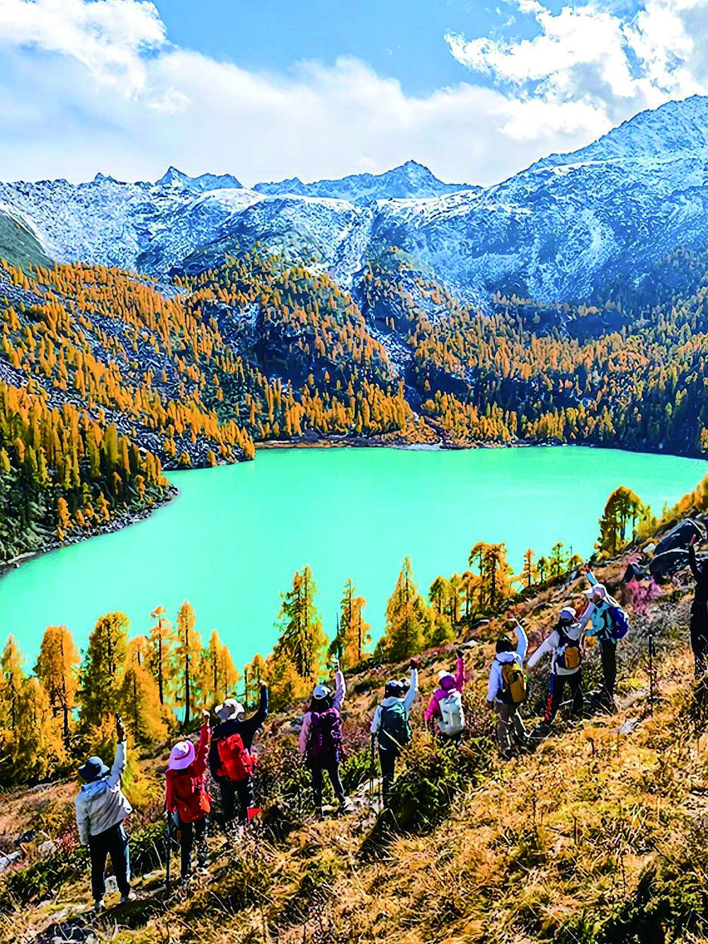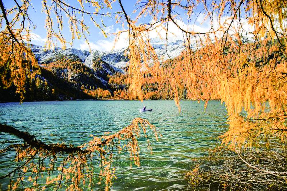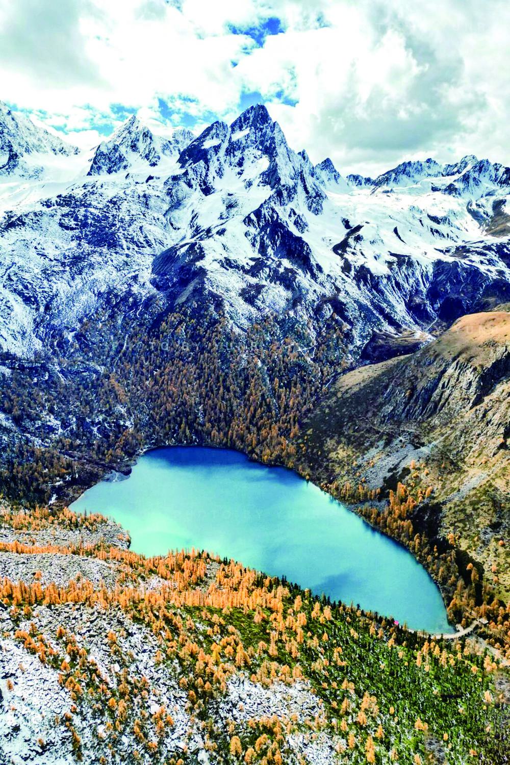 时下,海拔4000多米的道孚甲依拉措景区迎来了一年中最美的季节。澄澈如镜的湖面倒映着金黄的落叶杉林,远处雪山皑皑,这幅高原秘境画卷正吸引着八方游客。
